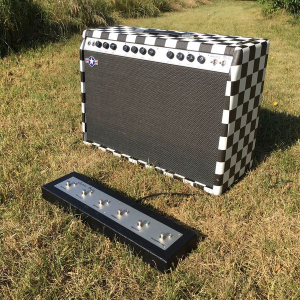 Der Grundverstärker verfügt über die unten genannte Röhrenbestückung, enthält zwei umschaltbare Kanäle (das Herzstück) und ist natürlich mit Mercury Magnetics Transformatoren bestückt. Die Gleichrichterröhre des Deluxe ist durch eine Diodengleichrichtung ersetzt worden, das schafft mehr Zuverlässigkeit und macht das Netzteil straffer. Der Verstärker ist in Vollröhrentechnik gebaut und besitzt keine Halbleiter im Signalweg - das heißt auch, dass die Kanalumschaltung per Relais, also per Schaltkontakt, erfolgt. Eine Relaisschaltung ist leider nur zu 98% "knackfrei" ausführbar und die letzten zwei Prozent Nebengeräusche ist umso ärgerlicher, je mehr Reverb oder Delay im Effektweg hängt. Da halten sie sich wohmöglich mehrere Sekunden. Hier muss eine neue Lösung her:
