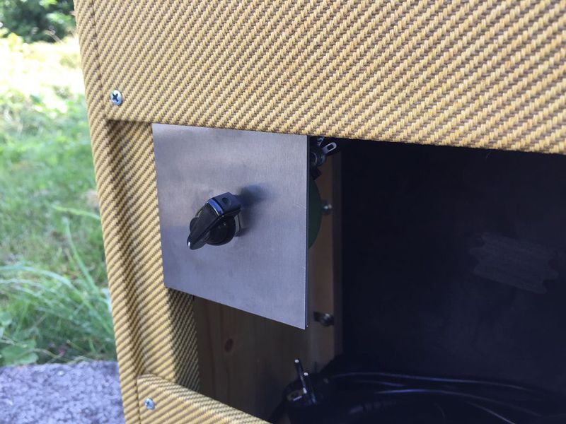 Der Powersoak wird auf der Rückseite montiert, schaltbar mit True Bypass. Auf Wunsch fußschaltbar mit Status-LED auf der Frontplatte.
