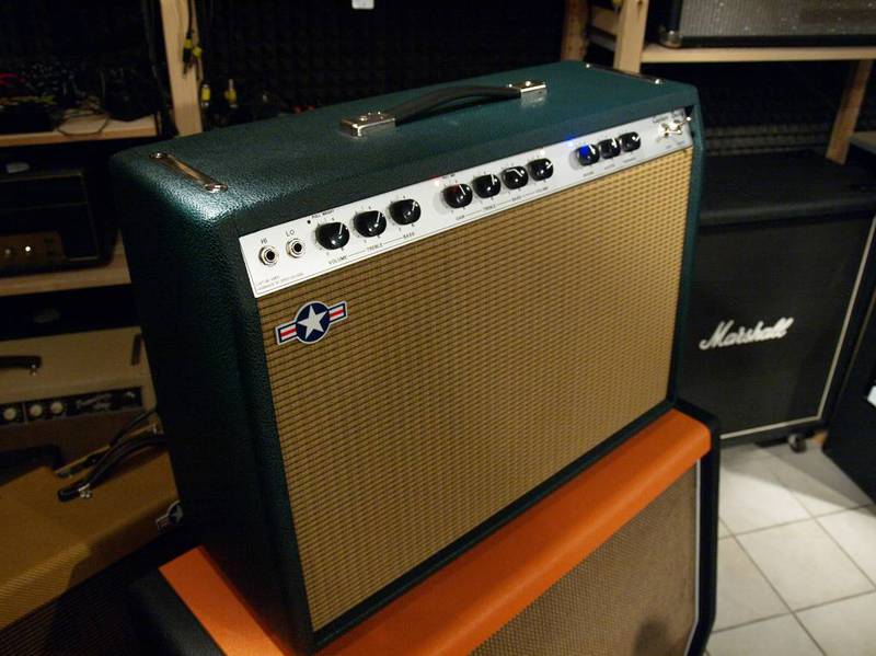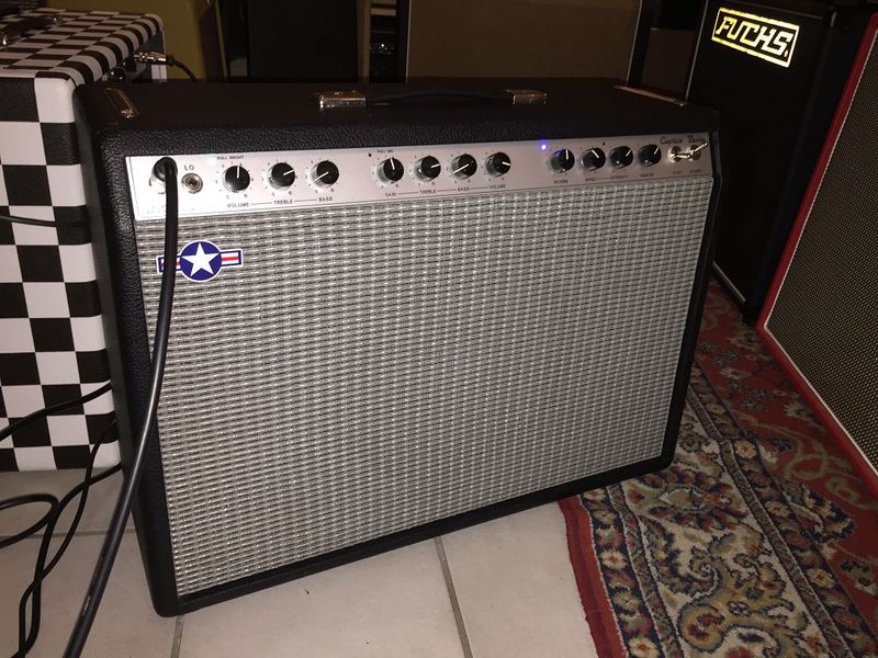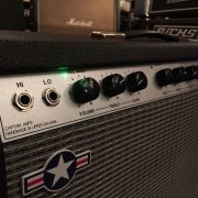 DER Comboverstärker schlecht hin: ein Blackface Deluxe Reverb. Geliebt wegen seines weltberühmten Clean-Kanals, dazu verpackt in ein kompaktes Gehäuse und mit einem 12“ Lautsprecher ausgestattet, verbindet er bereits drei erstrebenswerte Eigenschaften. Mit Reverb und Tremolo erhält man zusätzlich nützliche Funktionen, die aber nicht unbedingt benötigt werden - aber was drin ist, ist drin. Eine wirkliche Verschwendung hingegen ist der zweite ("normal") Kanal, den so gut wie niemand in der heutigen Zeit verwendet (und vermutlich damals schon nicht hat). Vermutlich ein Relikt aus alter Zeit, als es neben den "Instrument" noch ein "Mic"-Eingang gab, um neben der Gitarre gleichzeitig noch ein Mikrofon anschließen zu können. Viel mehr gefragt wäre hier ein zusätzlicher Kanal, kein zusätzlicher Eingang. Aber die Erfindung einer Kanalumschaltung stand damals vermutlich nicht auf Leo's to-do-Liste. Mit seinen ca. 20 Watt Ausgangsleistung bietet er ausreichend Lautstärke für die meisten Gegebenheiten, die Erfahrung zeigt aber auch hier, dass eine größere Endstufe, z.B. aus dem Pro, ebenso gut funktioniert und, neben gering erhöhter Lautstärke, ein ordentlichen Pfund Schub im Bassbereich bringt.