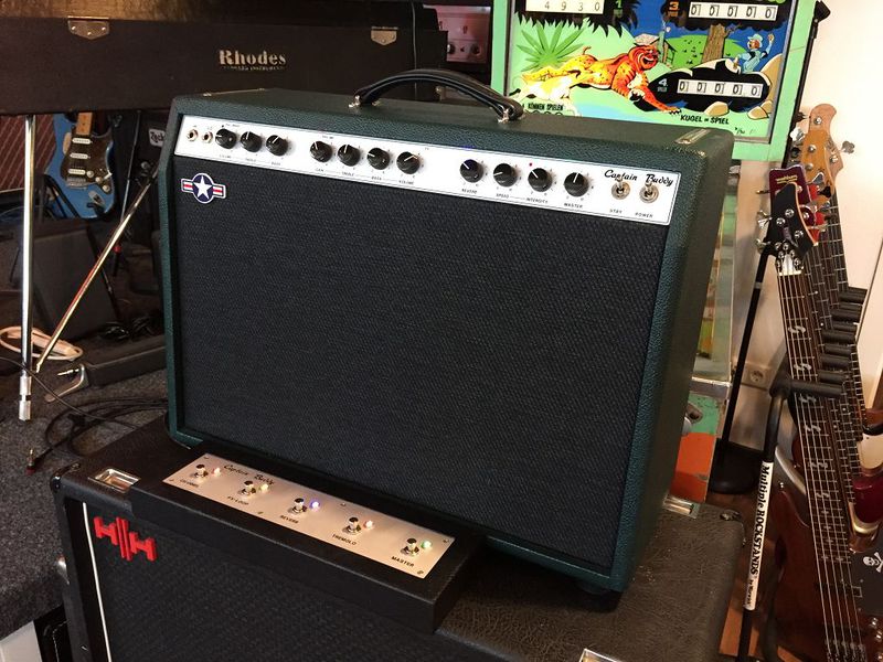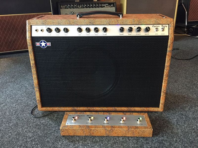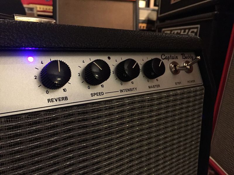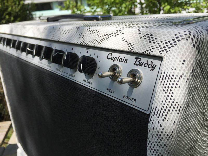 Dieser Buddy 40 hat eine speziell angefertigte Frontplatte, Tremolo, Master und Reverb mit extra Spring-Regler, um die Ansteuerung der Hallspirale zu regeln.
