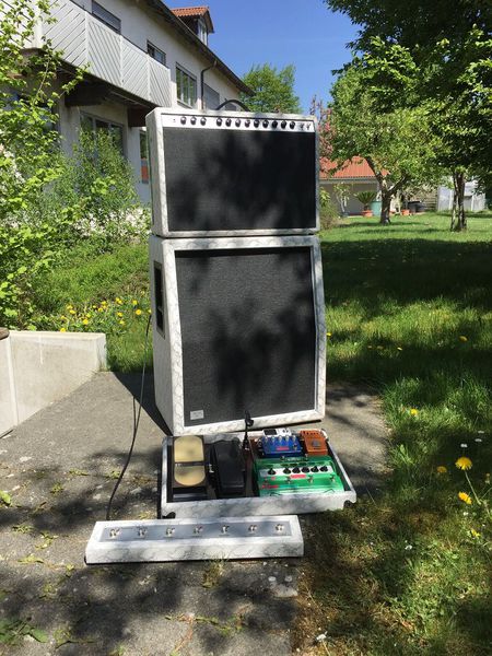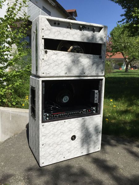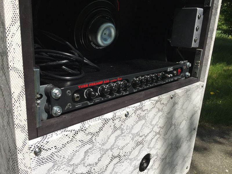 Die Captain CS212V ist breiter und tiefer als normal, zum Einen um in der Breite zum Buddy zu passen, zum Anderen um einen Engl 530 Tube-Preamp zu beherbergen.