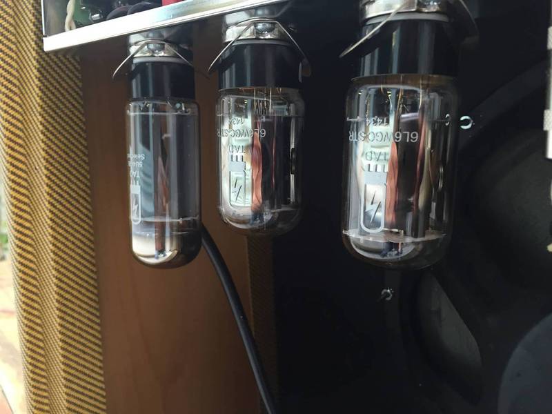 Zwei 6L6 Endstufenröhren erzeugen mit den Mercury Magnetics Trafos stabile 40Watt.