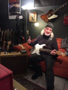 Ron Evans, mitglied der Captain Family, beim Abholen seines Captain TweedMaster 310 mit RFB im Showroom der Captain Guitar Lounge.
