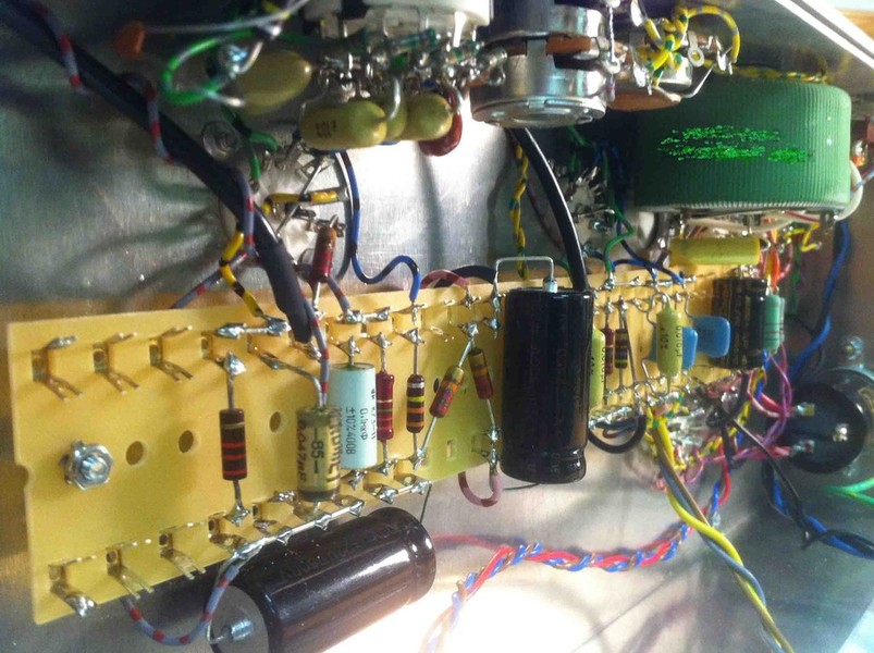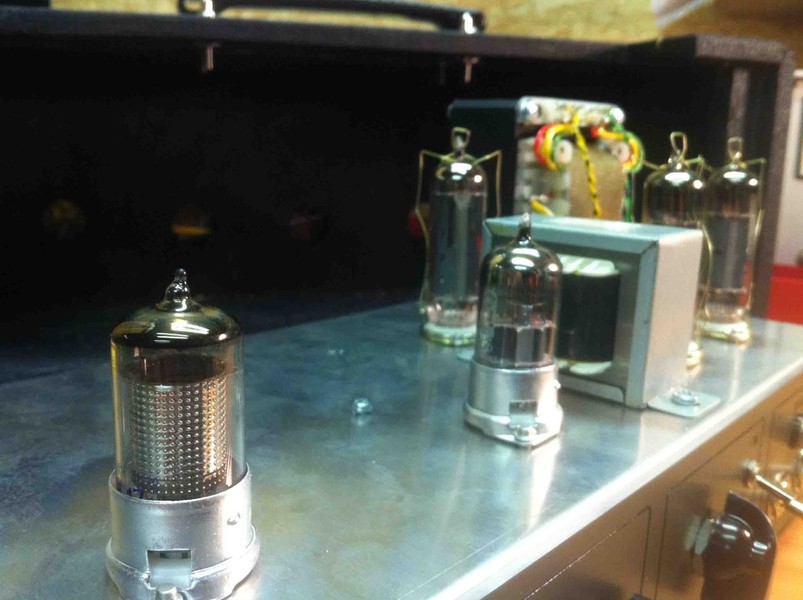 Durch die ausreichend hohe Verstärkung der EF86 ist keine weitere Vorstufenröhre notwendig. Das Signal gelangt danach direkt in den Phasendreher, der die beiden EL84 Endstufenröhren antreibt.