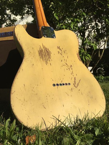 Nach langer Überlegung hab ich den Body meiner 1950er Fender Broadcaster zu MJT nach Missouri geschickt. Der Versand eines so wertvollen Teils ist keine einfache Aufgabe und ein Verlust wäre fatal. Aber es ist alles gutgegangen.